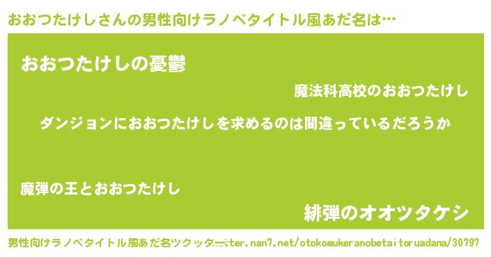 | 女子向けラノベタイトル風あだ名 | 『おおつたけしは平凡を望む』 |