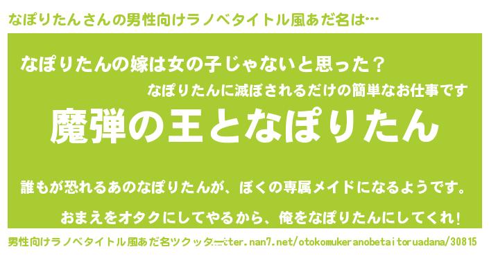 | 女子向けラノベタイトル風あだ名 | 『乙女ゲームの破滅フラグしかない悪役なぽりたんに転生してしまった…』 |