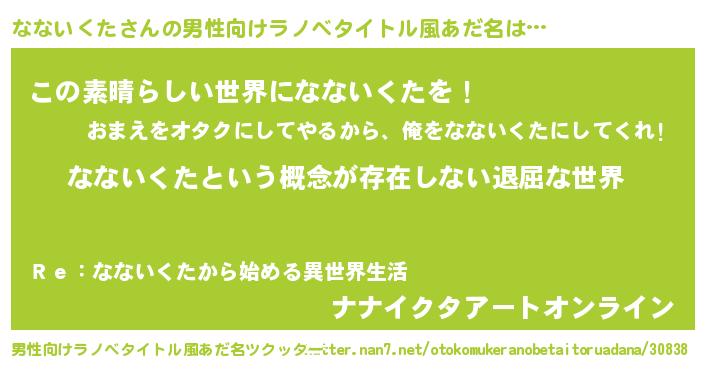 | 胡散臭い通販商品みたいなあだ名 | 『絶対に幸福をもたらす健康食品…その名も「なないくた」』 |