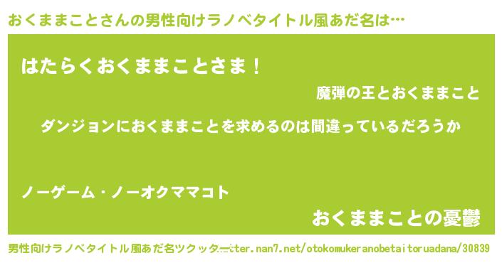 | 意味不明あだ名 | 『とにかく怪しいおくままこと』 |