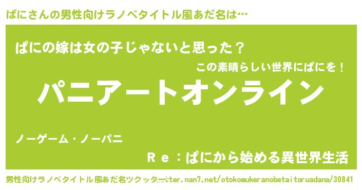 | 胡散臭い通販商品みたいなあだ名 | 『億万長者になれるブレスレット…その名も「ぱに」』 |