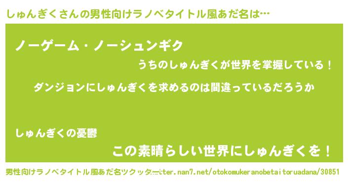 | 女子向けラノベタイトル風あだ名 | 『しゅんぎくの卵を拾いまして』 |