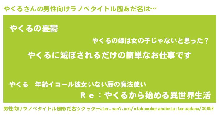 | 女子向けラノベタイトル風あだ名 | 『横柄やくると宰相陛下』『闇のやくる』 |