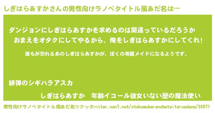 | 女子向けラノベタイトル風あだ名 | 『しぎはらあすかの契約王妃』 |