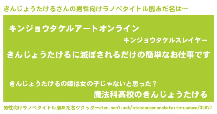 | ヒーロー風カッコイイあだ名 | 『スーパーキンジョウタケル』 |