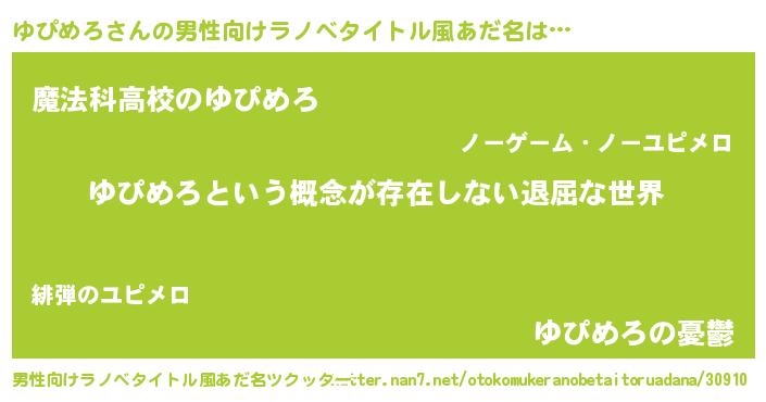 | 女子向けラノベタイトル風あだ名 | 『ゆぴめろの契約王妃』『ゆぴめろ恋絵巻』 |