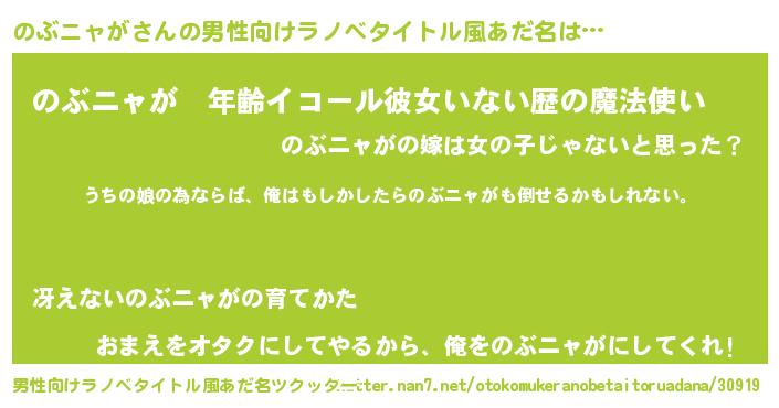 | 胡散臭い通販商品みたいなあだ名 | 『運命の人と巡り会える高級そうな壺…その名も「のぶニャが」』 |