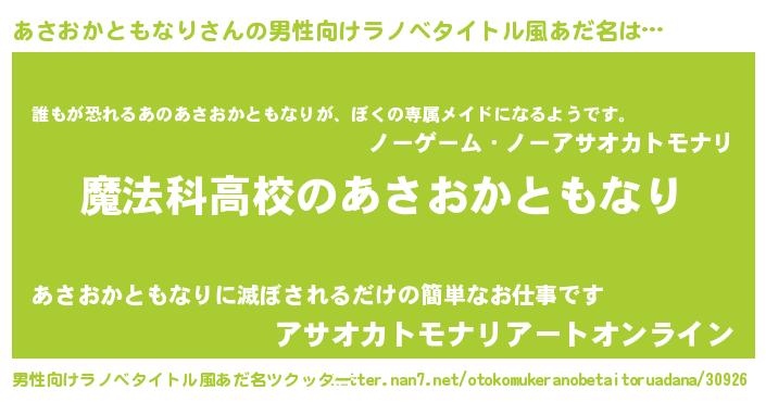 | 女子向けラノベタイトル風あだ名 | 『あさおかともなりなんてお断りですっ。』 |