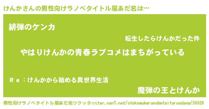 | 意味不明あだ名 | 『けんかフォーエバー』『自称けんか』 |