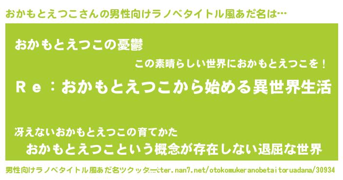 | 女子向けラノベタイトル風あだ名 | 『闇のおかもとえつこ』 |