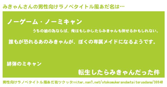 | 女子向けラノベタイトル風あだ名 | 『みきゃんの契約王妃』 |