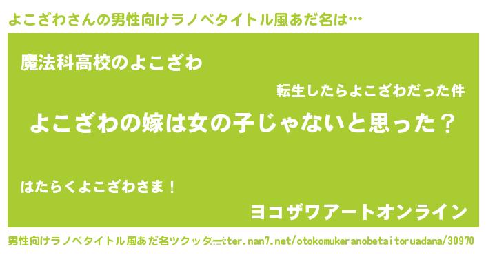 | 女子向けラノベタイトル風あだ名 | 『よこざわ様がみてる』 |