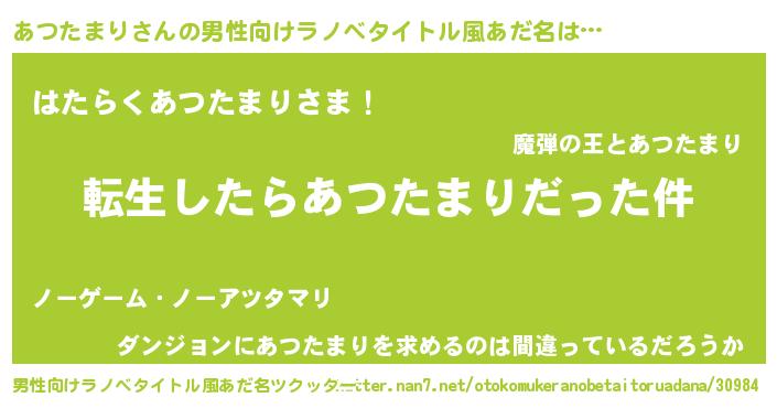 | 胡散臭い通販商品みたいなあだ名 | 『伝統あるペンダント…その名も「あつたまり」』 |