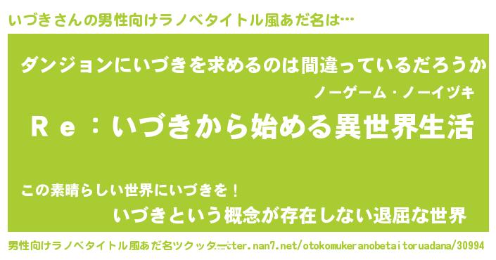 | 女子向けラノベタイトル風あだ名 | 『闇のいづき』『いづきの卵を拾いまして』 |