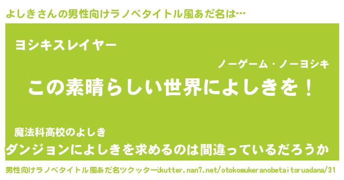 | 欧米人風あだ名 | 『ダレノガレよしき』『トリンドルよしき』 |