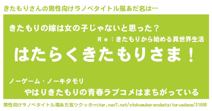 | 胡散臭い通販商品みたいなあだ名 | 『信頼と実績のサプリメント…その名も「きたもり」』 |