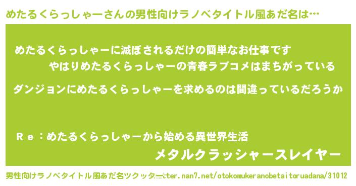 | 胡散臭い通販商品みたいなあだ名 | 『信頼と実績のペンダント…その名も「めたるくらっしゃー」』 |