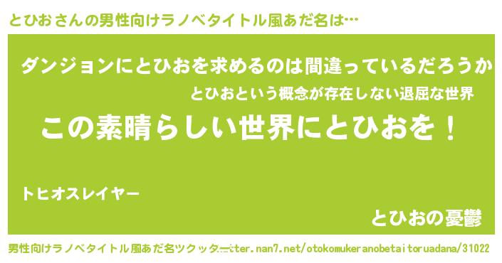 | 意味不明あだ名 | 『住所不定無職とひお(91歳)』 |