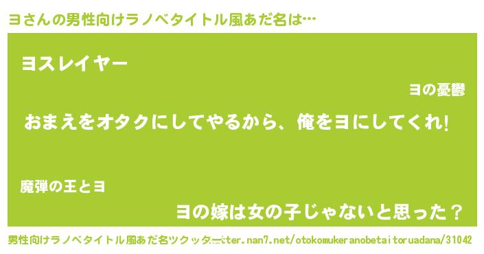 | 女子向けラノベタイトル風あだ名 | 『ヨ夫妻のなれそめ』『ヨ姫と円卓の騎士』 |