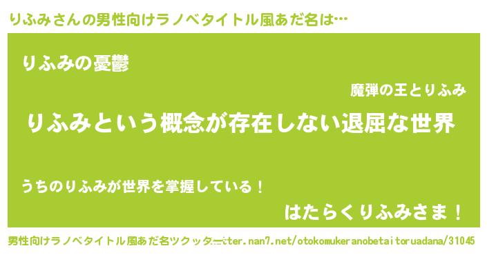 | ヘコむあだ名 | 『りふみ(笑)』『りふもー』『豆乳』 |