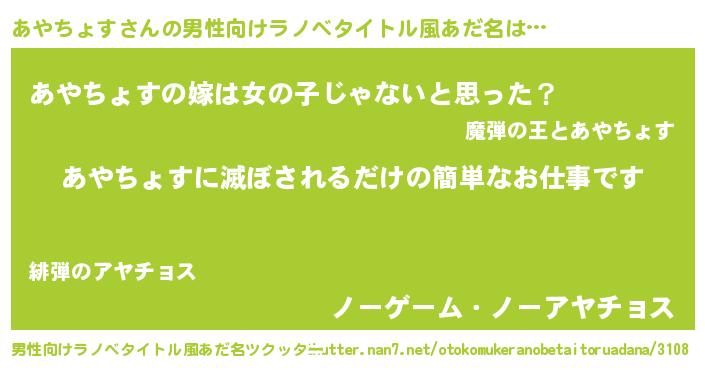 | 意味不明あだ名 | 『とにかく怪しいあやちょす』 |
