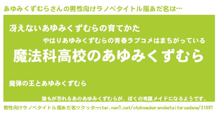 | ヒーロー風カッコイイあだ名 | 『サイバー戦士アユミクズムラ』 |