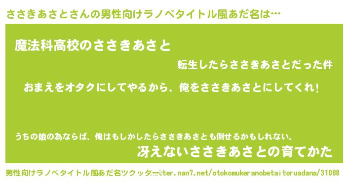 | 意味不明あだ名 | 『眠気覚ましガムささきあさと味』 |