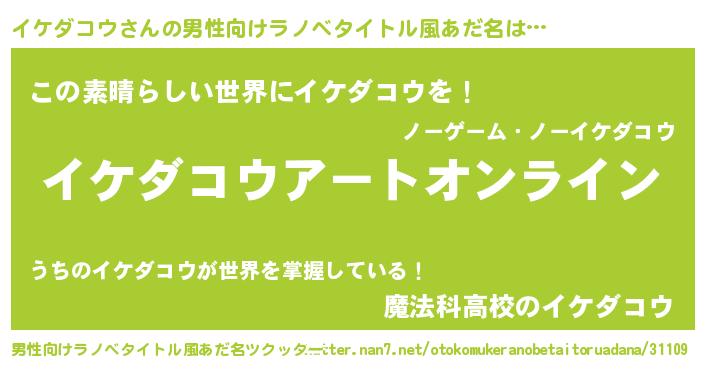 | 女子向けラノベタイトル風あだ名 | 『誰かこのイケダコウを説明してください! ~契約から始まるウェディング~』 |