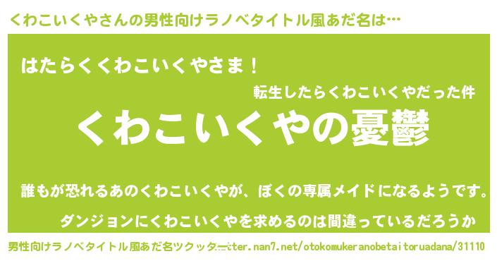 | 胡散臭い通販商品みたいなあだ名 | 『必ず成功するブレスレット…その名も「くわこいくや」』 |