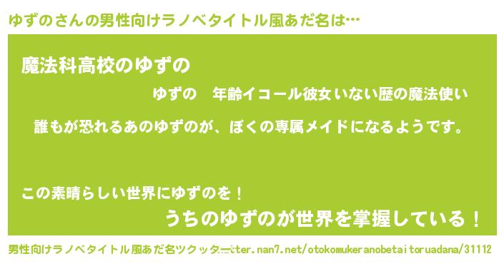 | 女子向けラノベタイトル風あだ名 | 『異世界でカフェゆずのを開店しました。』 |