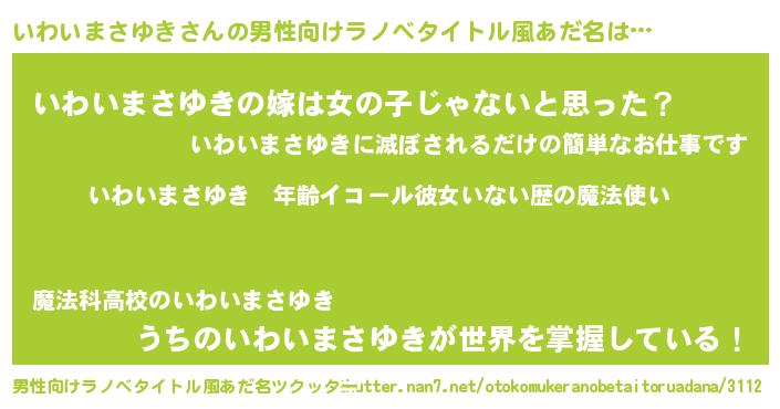 | 女子向けラノベタイトル風あだ名 | 『いわいまさゆきの玉の輿計画!』 |