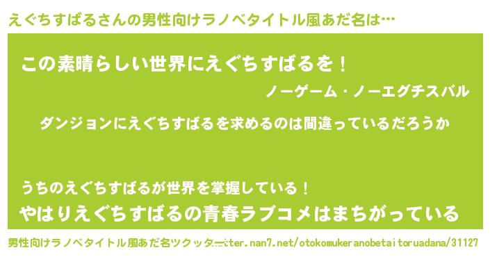 | 女子向けラノベタイトル風あだ名 | 『えぐちすばるは平凡を望む』 |
