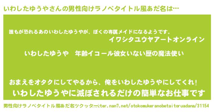 | ヘコむあだ名 | 『いわしたゆうや(笑)』『いわにー』 |
