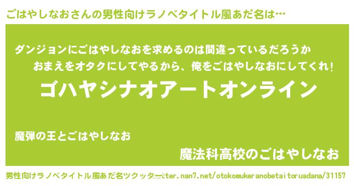 | ポケモン風あだ名 | 『ゴハチュウ』『ヒゴハヤシナオ』 |
