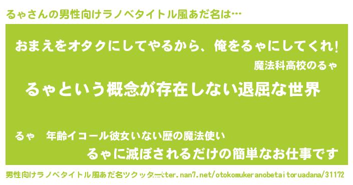 るゃさんの男性向けラノベタイトル風あだ名をツクッター!
