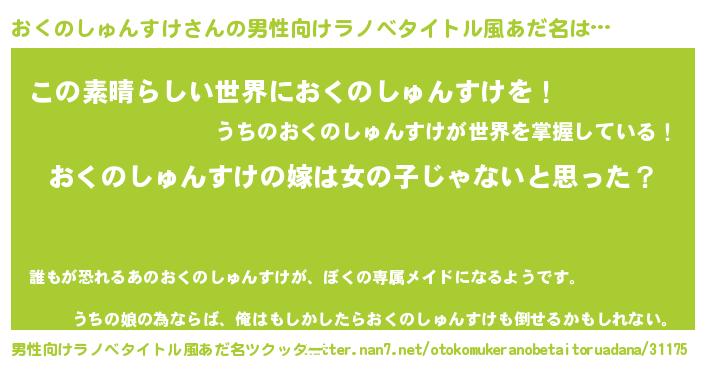 | 女子向けラノベタイトル風あだ名 | 『おくのしゅんすけ様がみてる』 |