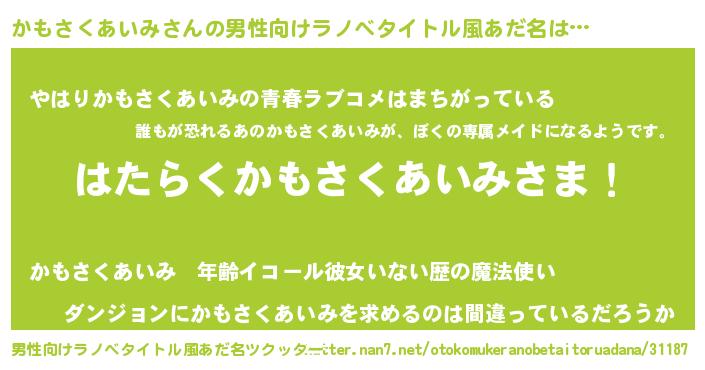 | 欧米人風あだ名 | 『アンジェラ・かもさくあいみ』 |