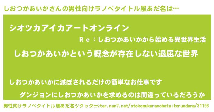 | ヒーロー風カッコイイあだ名 | 『ネオシオツカアイカ』『暗黒騎士シオ』 |