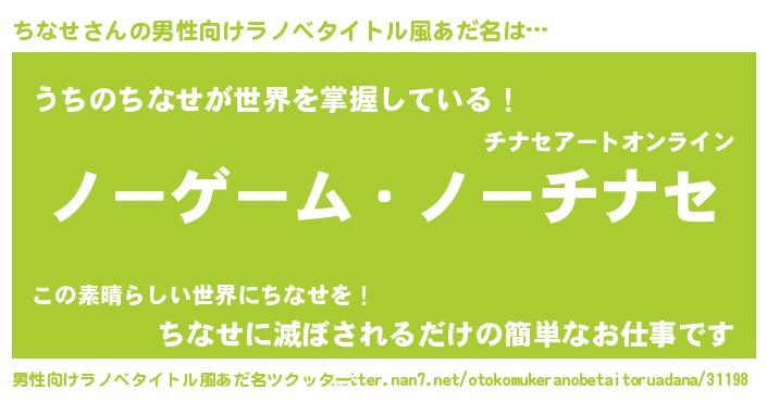 | 女子向けラノベタイトル風あだ名 | 『死神ちなせの再婚』 |