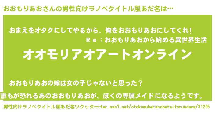 | 女子向けラノベタイトル風あだ名 | 『誰かこのおおもりあおを説明してください! ~契約から始まるウェディング~』 |