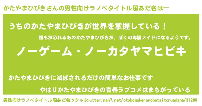 | 女子向けラノベタイトル風あだ名 | 『死神かたやまひびきの再婚』 |