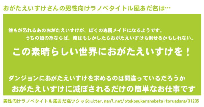 | 意味不明あだ名 | 『住所不定無職おがたえいすけ(40歳)』 |