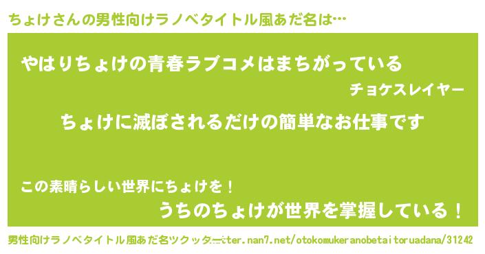 | 胡散臭い通販商品みたいなあだ名 | 『運命の人と巡り会える高級そうな皿…その名も「ちょけ」』 |
