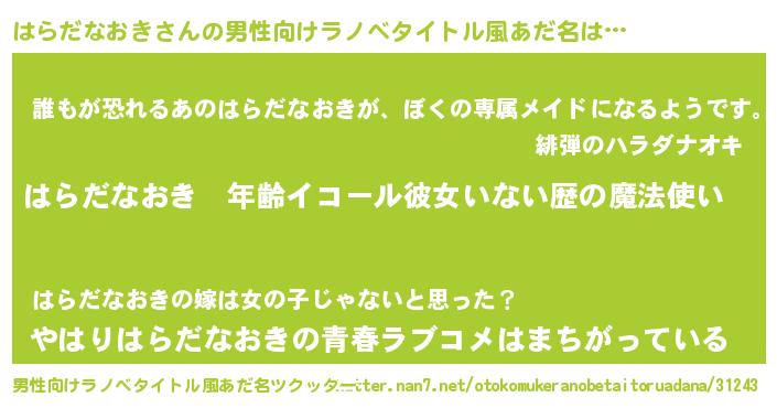 | ヘコむあだ名 | 『はらだなおき(苦笑)』『なまこ酢』 |