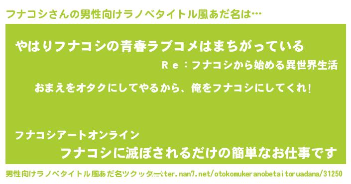 | ヘコむあだ名 | 『豆乳』『フナっふぃ~』『フナっぺ』 |