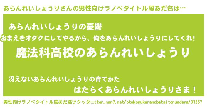 | 女子向けラノベタイトル風あだ名 | 『あらんれいしょうりアンティーク』 |