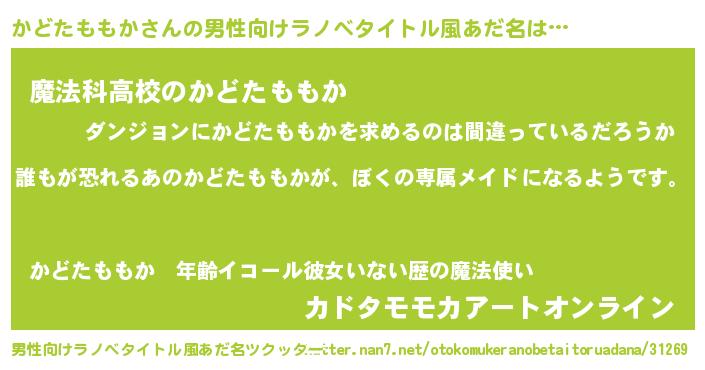 | 女子向けラノベタイトル風あだ名 | 『かどたももかの契約王妃』 |