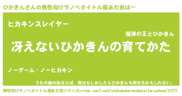 | 胡散臭い通販商品みたいなあだ名 | 『世界が平和になる高級そうな絵画…その名も「ひかきん」』 |