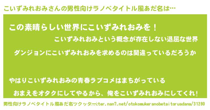 | 胡散臭い通販商品みたいなあだ名 | 『信頼と実績のネックレス…その名も「こいずみれおみ」』 |