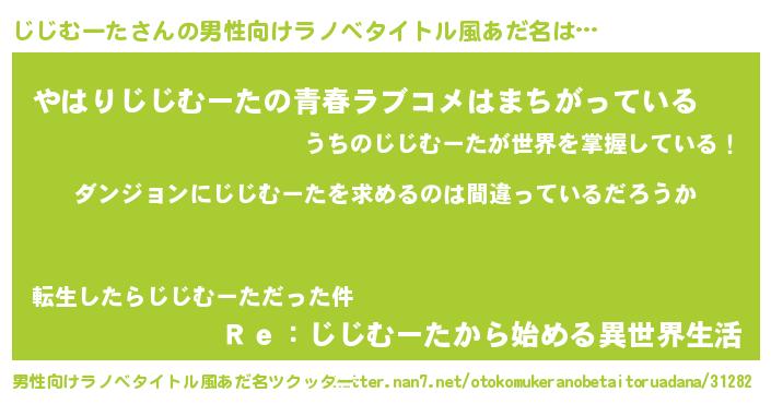 | 女子向けラノベタイトル風あだ名 | 『じじむーたは平凡を望む』 |